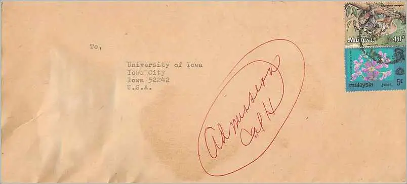 Lettre Cover for University of Iowa Malaysia Turtle