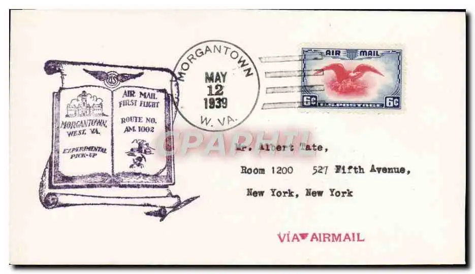 Lettre Etats Unis 1st flight Morgantown 12 5 1939