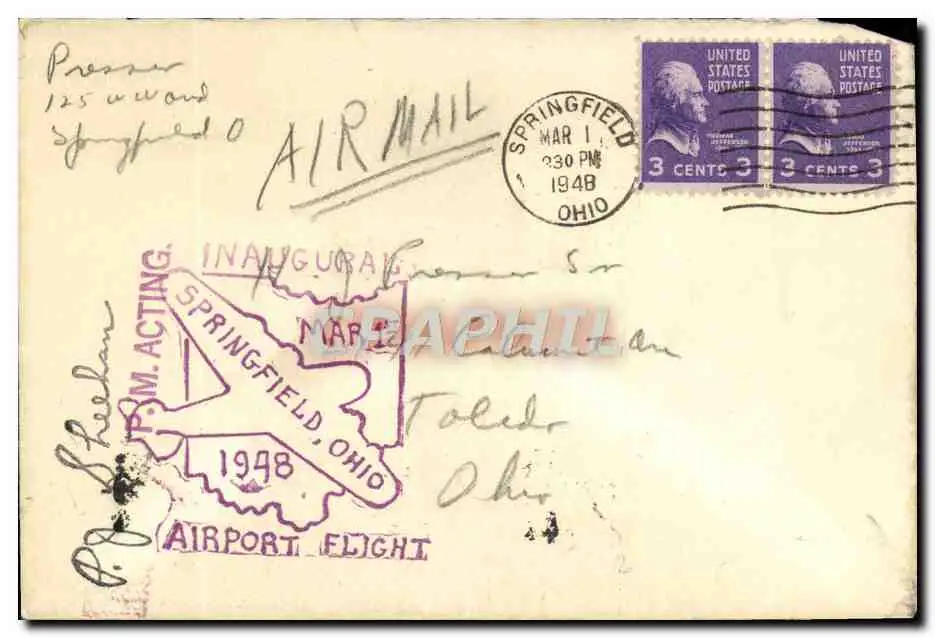 Lettre Etats Unis Flight Springfield 1 3 1948