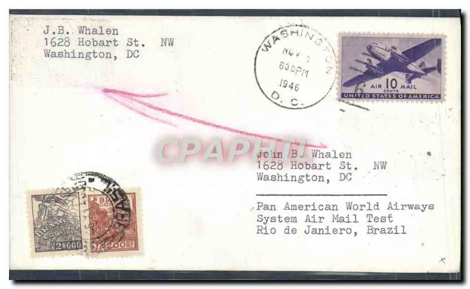 Lettre Etats Unis Flight to Brazil 1 11 1946