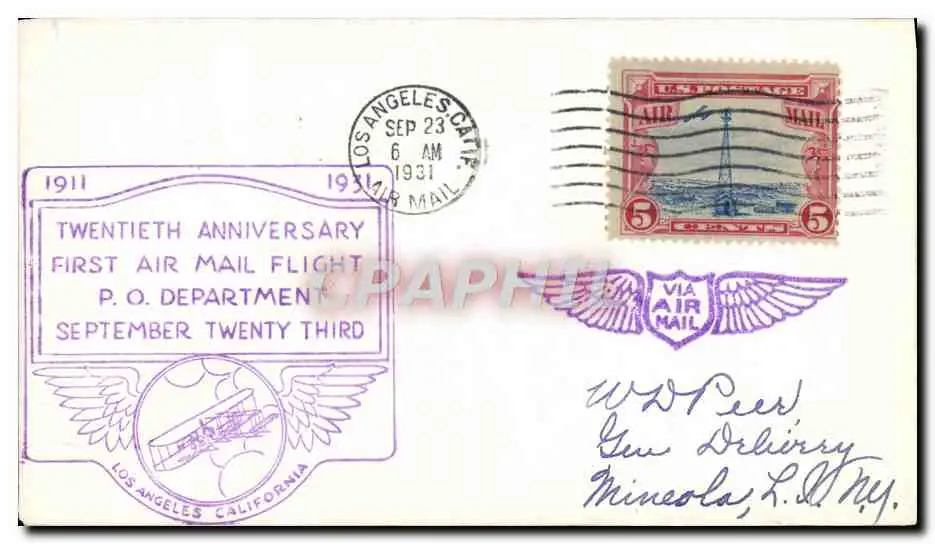 Lettre Etats Unis Flight to Mineola Los Angeles