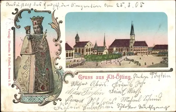 Leuchtfenster Ak Altötting Oberbayern, Marktplatz mit Kirche