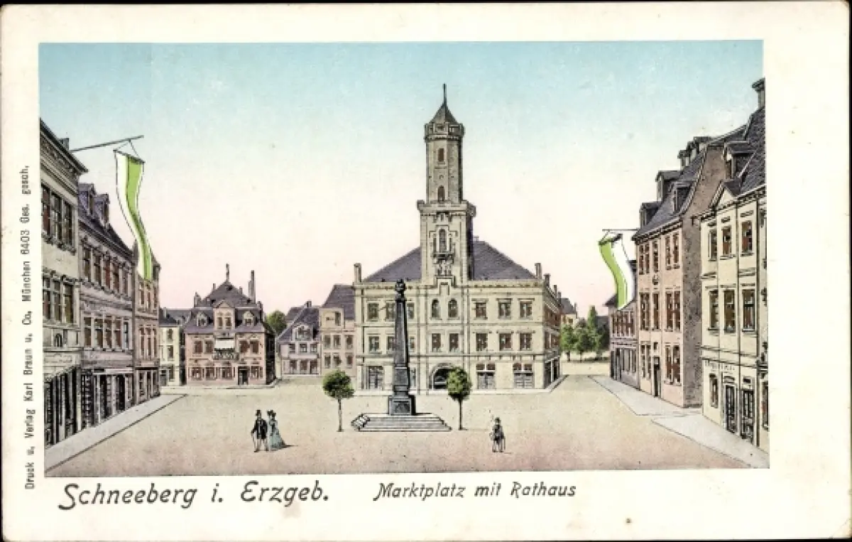 Leuchtfenster Ak Schneeberg im Erzgebirge, Rathaus, Marktplatz