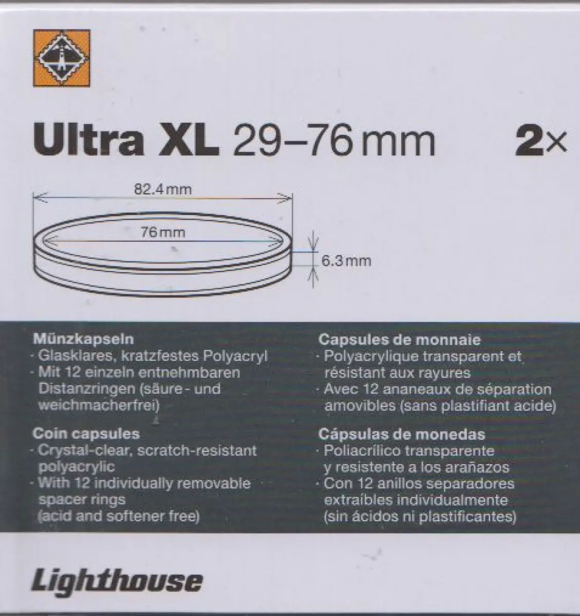 Leuchtturm Münzkapseln Ultra XL, 2er Pack (Ø 29-76)
