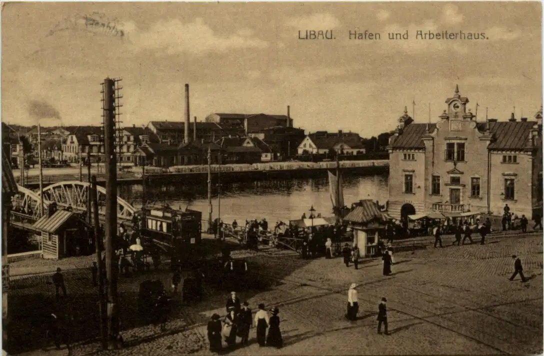 Libau - Hafen und Arbeiterhaus - Feldpost Feldkreigsschule -460954