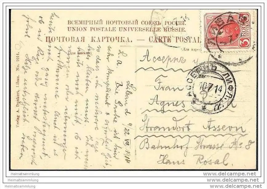 Libau - Kornstrasse - Verlag A. Dunkert Libau - leichte Stempelspur - Eckknick unten links (G21796) gel. 1914