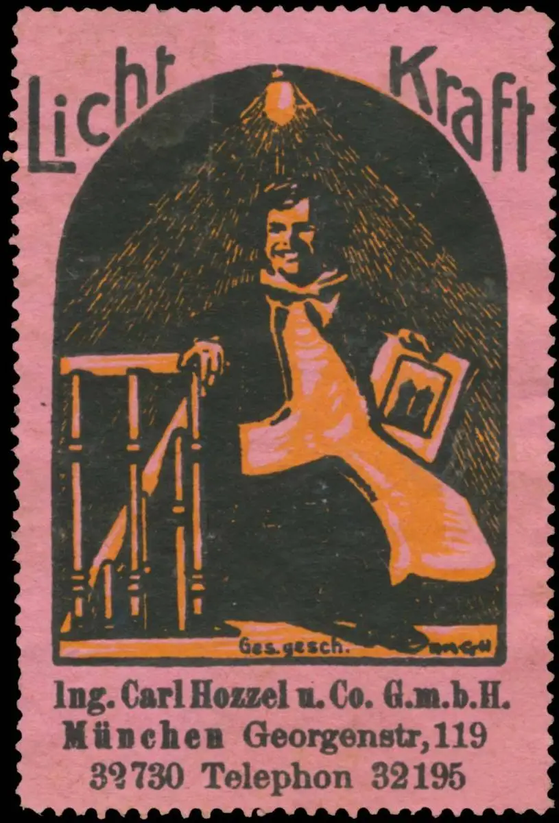 Münchner Kindl, Beleuchtung, rosa, Größe/Zustand: 7x6 , guter Zustand, Original alte Reklamemarke die seinerzeit für die Werbung benutzt wurde