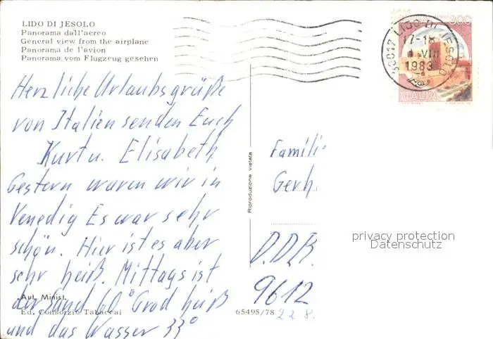 Lido di Jesolo Panorama Luftbild Italien postalisch gelaufen 1983 Erhaltung siehe scans Alte Ansichtskarte Postkarte Kathoren