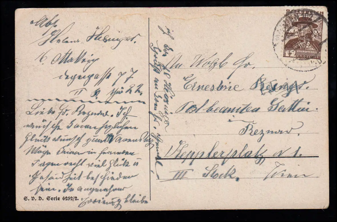 Liebes-AK Rosengrüße Brieftaube - Ein Liebesbrief entsteht, WIEN 23.7.1936