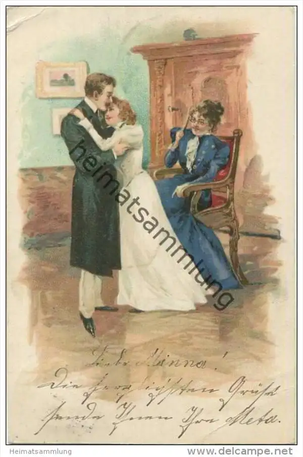 Liebespaar - Eckknick oben links und unten rechts (E14853) gel. 1902