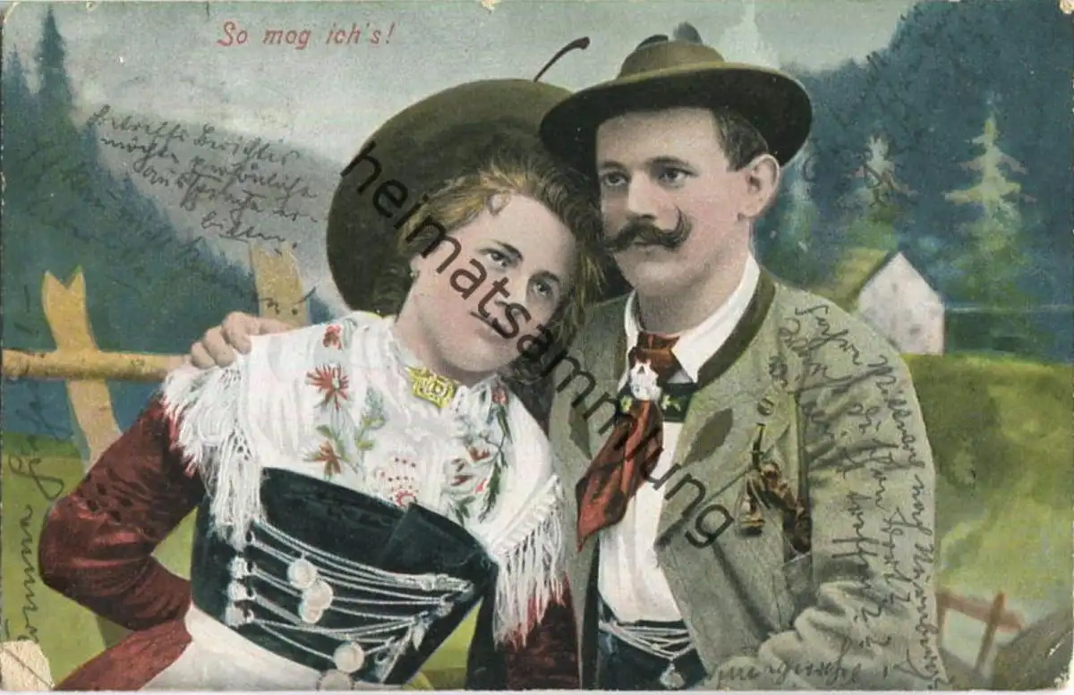 Liebespaar in Tracht - Gebrauchsspuren (G46746) gel. 1908