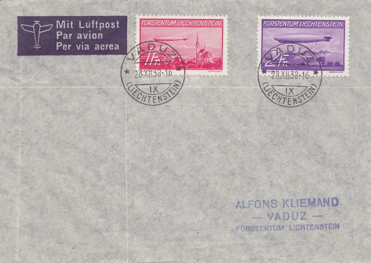 Liechtenstein: 1938: Brief von Vaduz - Luftpost