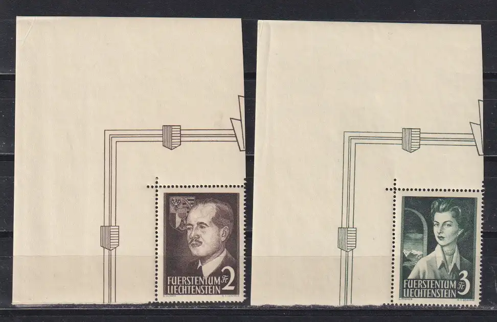 Liechtenstein Freimarken Fürstenpaar MiNo. 332/33** Ecksatz Feld 1