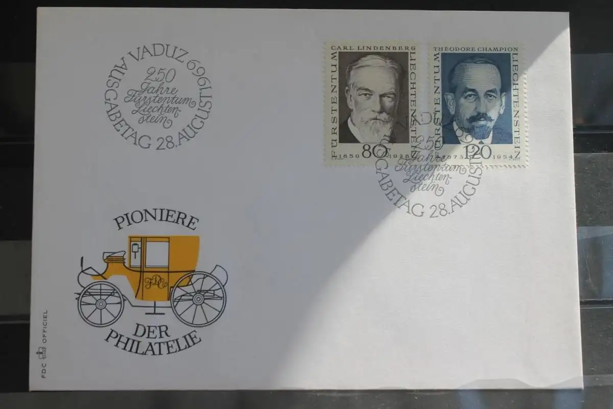 Liechtenstein 1969; Pioniere der Philatelie; MiNr. 512-13 auf FDC