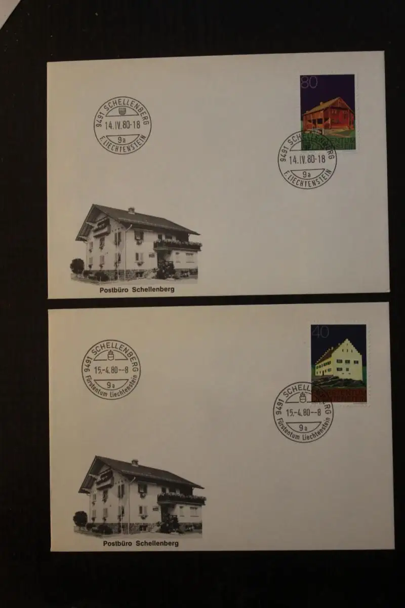 Am 15.4.1980 wurden in Liechtenstein die Post-Datumsstempel sämtlicher Postbüros (13 an der Zahl) nach Klicheeänderung ausgewechselt. Dieses Angebot umfasst jeweils den Sonderumschlag "Postbüros in Liechtenstein" mit Letzttagsstempel 14.4.80 und Ersttagsstempel 15.4.1980. des Post-