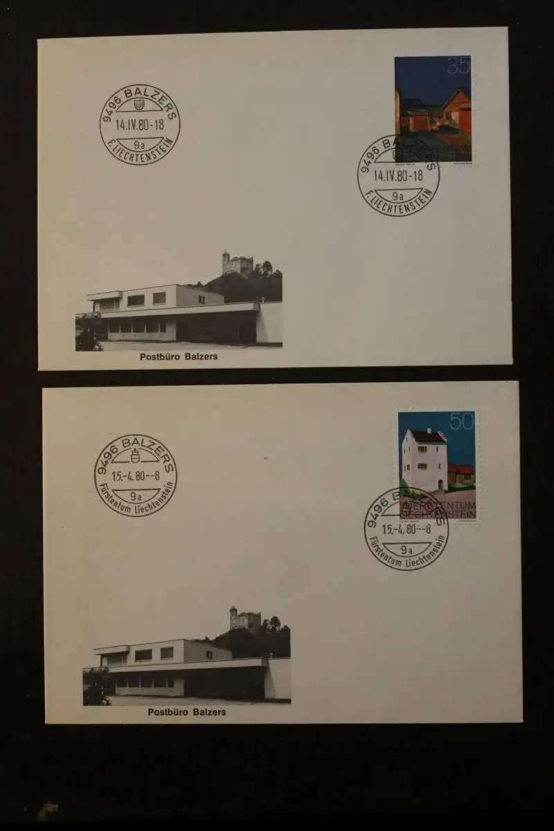 Am 15.4.1980 wurden in Liechtenstein die Post-Datumsstempel sämtlicher Postbüros (13 an der Zahl) nach Klicheeänderung ausgewechselt. Dieses Angebot umfasst jeweils den Sonderumschlag "Postbüros in Liechtenstein" mit Letzttagsstempel 14.4.80 und Ersttagsstempel 15.4.1980. des Post-