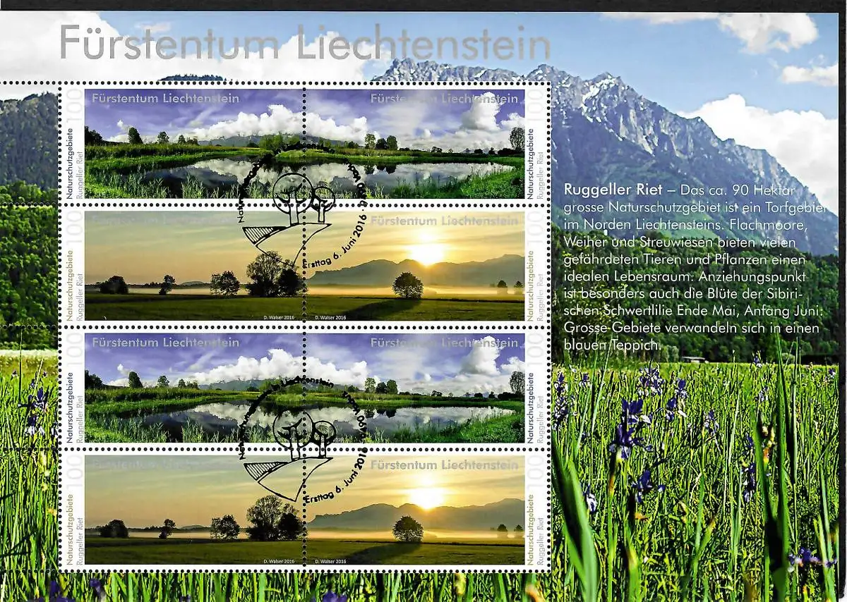Liechtenstein 2016: Rugeller Riet, Kleinbogen gestempelt, Ersttag