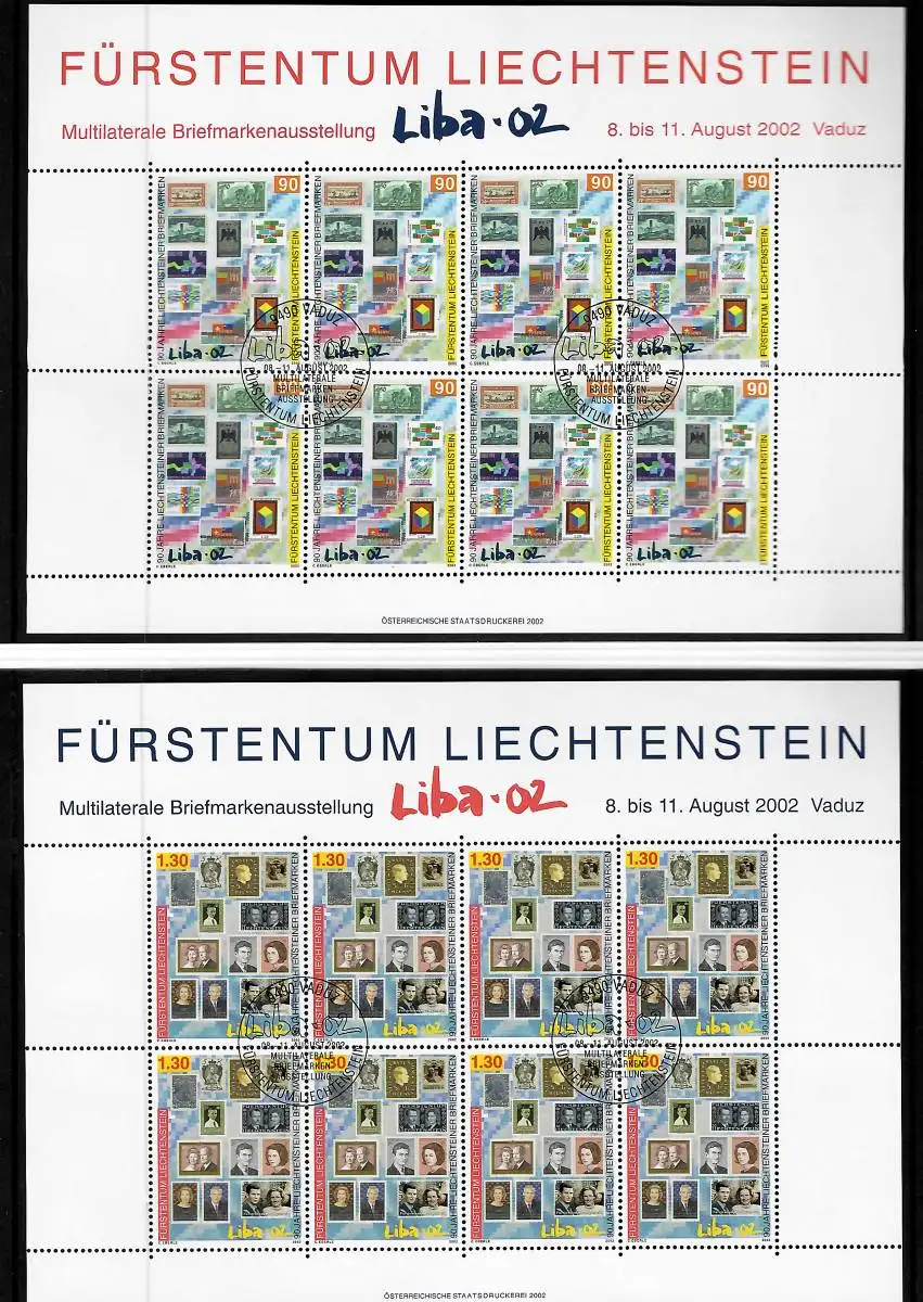 Liechtenstein: Liba 2002, Briefmarken Faltblatt mit 2x Kleinbogen, gestempelt