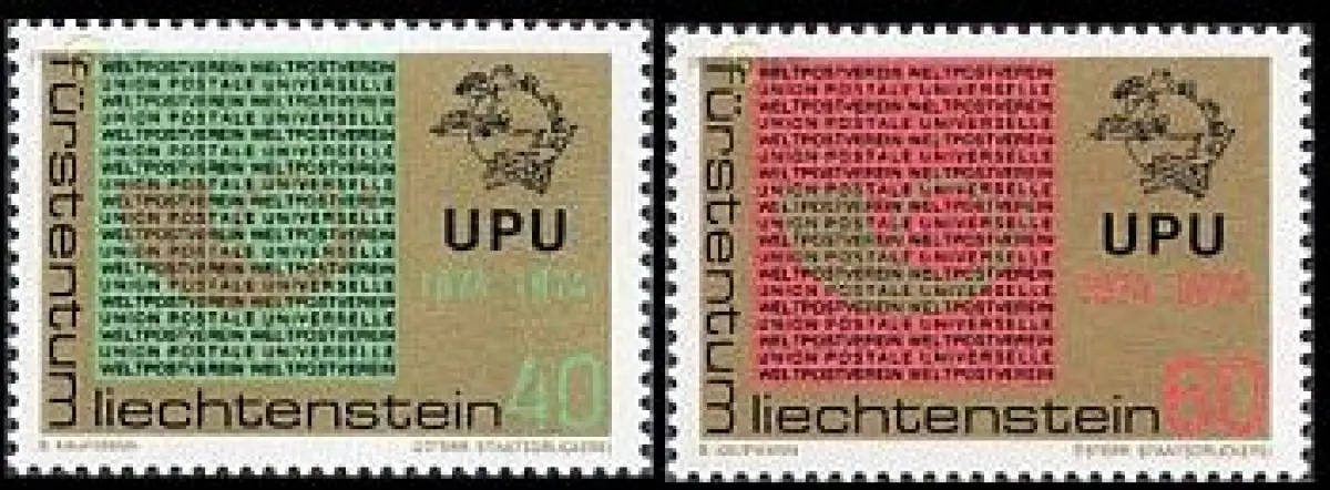 Liechtenstein Mi.Nr. 607-08 100 J. Weltpostverein, Posthorn + UPU Emblem (2 W.)