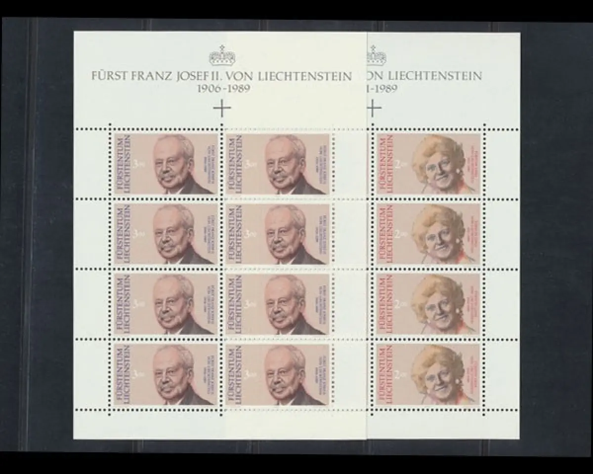 Fürstin Gina und Fürst Franz Josef II. von Liechtenstein, 2 Kleinbögen.