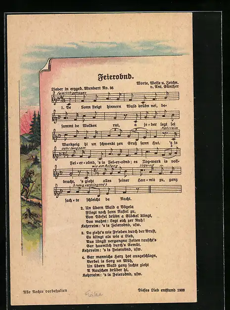 Lied-AK Anton Günther Nr. 36: Feierobnd, Liedtext und Noten