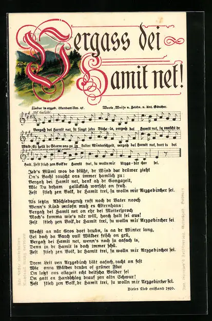 Lied-AK Anton Günther Nr. 47: Vergass dei Hamit net!, Ortspartie