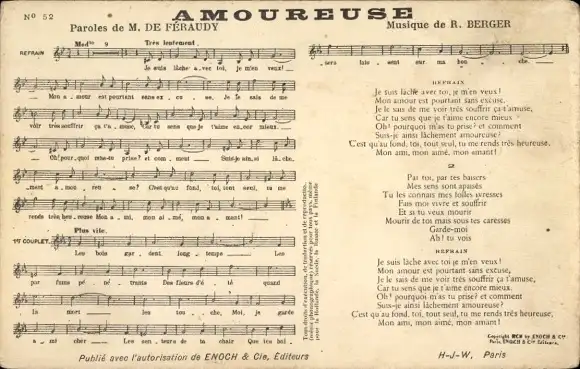 Lied Ak Amoureuse, Text M. de Feraudy, Musik R. Berger