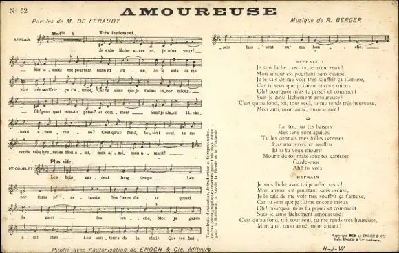 Lied Ak Amoureuse, Text M. de Feraudy, Musik R. Berger