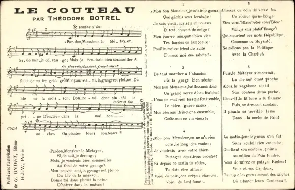 Lied Ak Botrel, Theodore, Le Couteau, Pardon Monsieur le Metayer