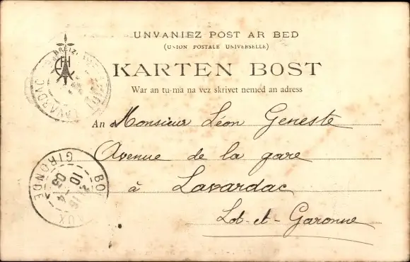 Zustand, siehe Scan, gelaufen, 1903 - ca 14 cm X 9 cm