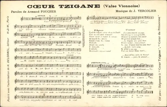 Lied Ak Coeur Tzigane, Valse Viennoise, Armand Foucher, J. Vercolier