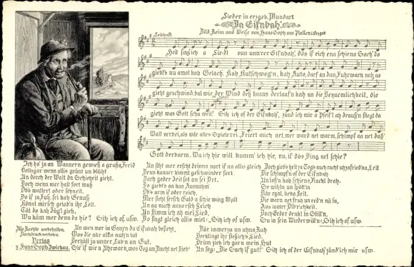 Lied Ak Da Eis'nbah, Erzgebirgische Mundart, Mann mit Pfeife