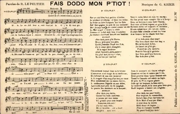 Lied Ak Fais dodo mon P'Tot, Musik von G. Krier, Text von R. Le Peltier