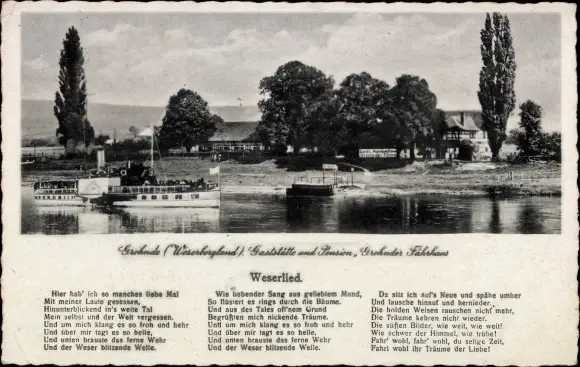 Lied Ak Grohnde Emmerthal an der Weser, Weserlied, Grohnder Fährhaus, Salondampfer