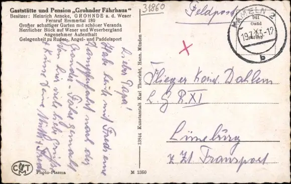 Zustand, siehe Scan, gelaufen- Inh. Heinrich Arneke - ca 14 cm X 9 cm