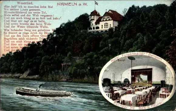 Lied Ak Hameln an der Weser, Hotel Felsenkeller, Weserlied, Dampfer