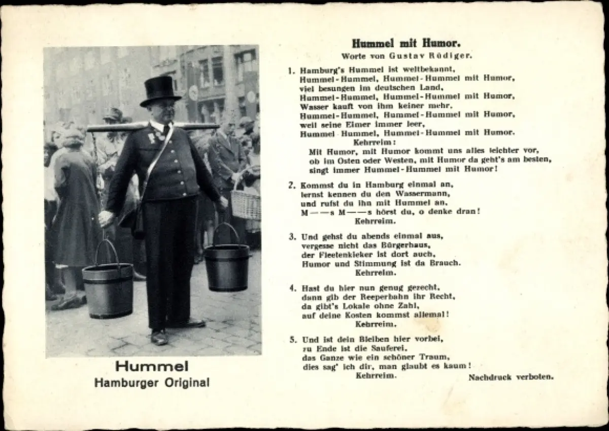 Lied Ak Hummel mit Humor, Mann mit Wassereimern