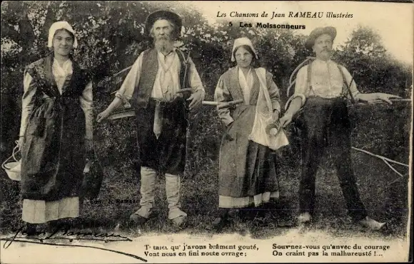 Lied Ak Les Chansons de Jean Rameau illustrees, les Moissonneurs, Trachten