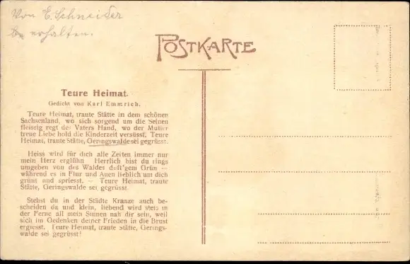 Lied Ak Teure Heimat, Gedicht von Karl Emmrich, Comp. M. Stiehl