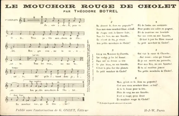 Lied Ak Theodore Botrel, Le Mouchoir Rouge de Cholet