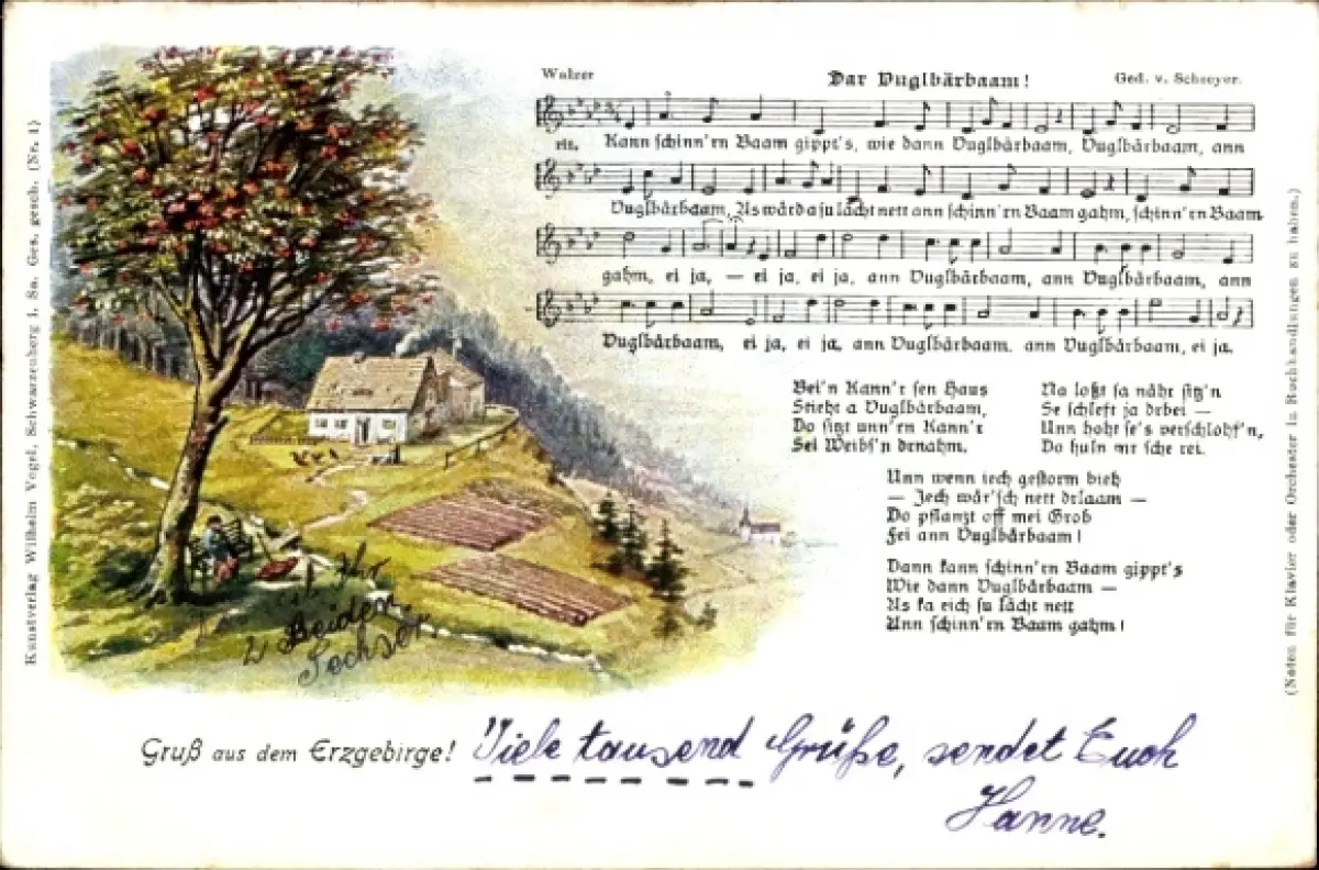 Lied Ak Vogel, Wilhelm, Dar Vuglbärbaam, Landschaftsidylle, Erzgebirge