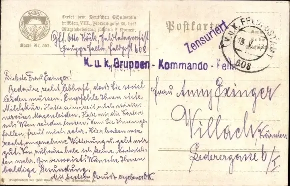 Zustand, siehe Scan, gelaufen, 1917- Deutscher Schulverein 557 - ca 9 cm X 14 cm