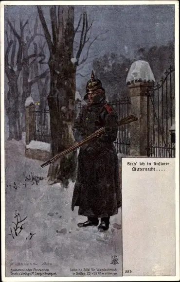 Lied Künstler Ak Steh' ich in finstrer Mitternacht, deutscher Wachsoldat in Uniform