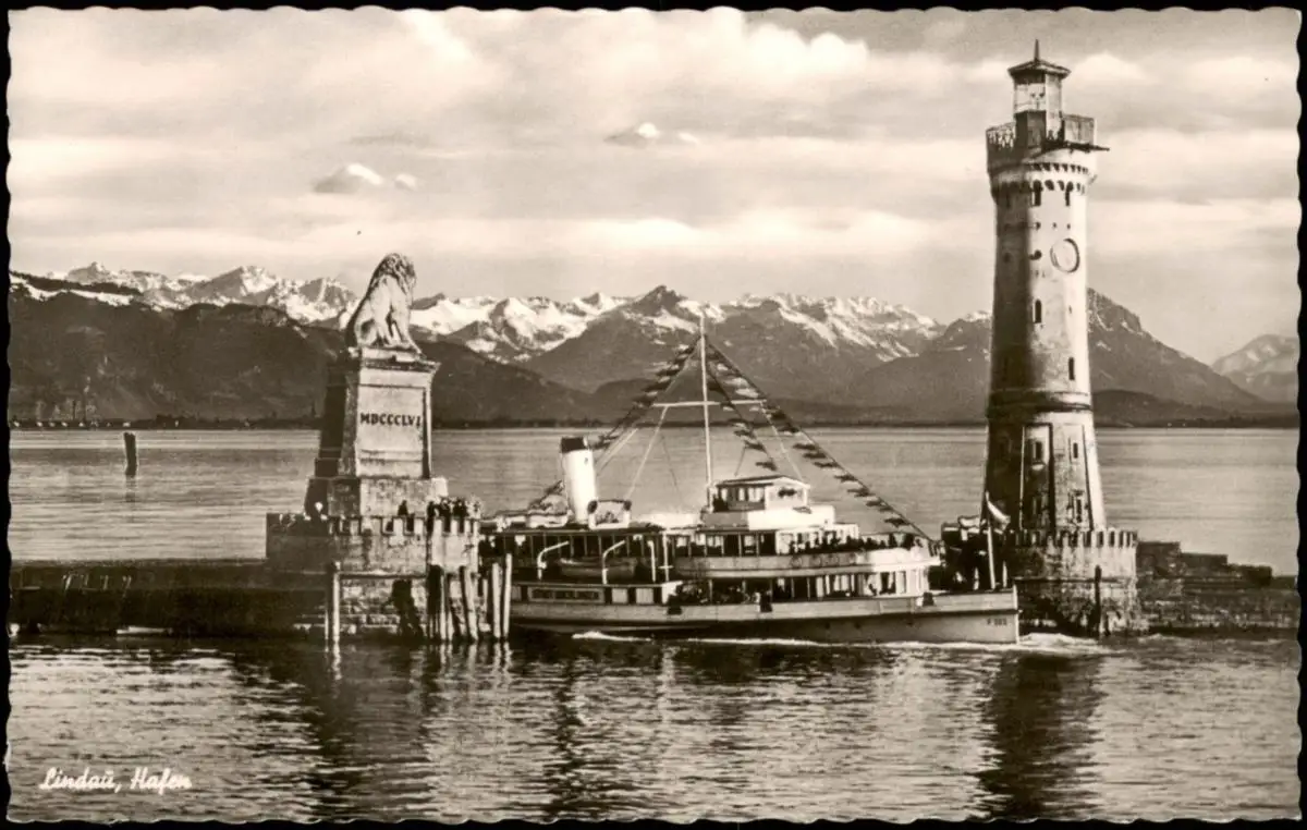 Lindau (Bodensee) Hafen einfahrendes Bodensee Fahrgastschiff 1960