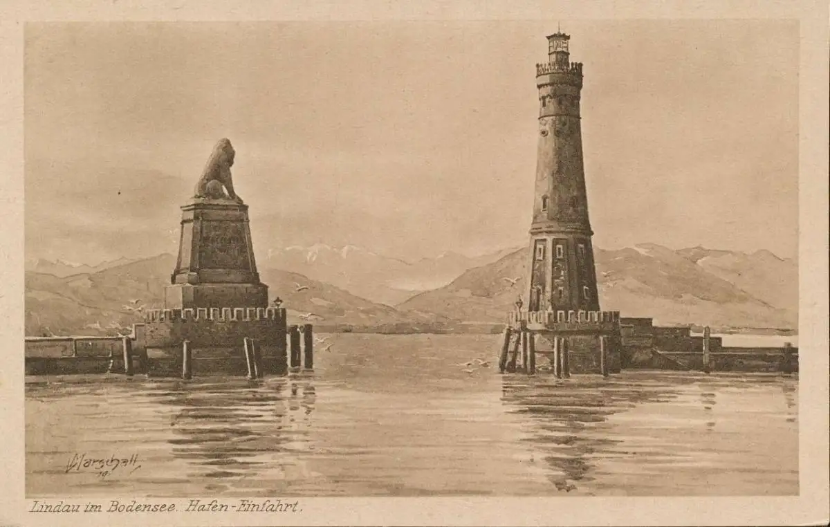 Lindau i.B. Hafeneinfahrt gemalt Marschall ngl 134.943