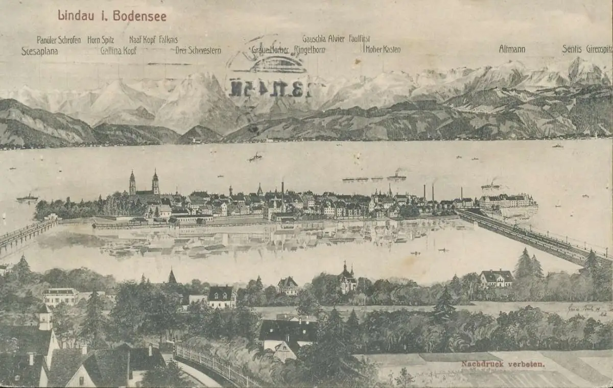 Lindau i.B. Panorama mit Alpen gl1911 135.140