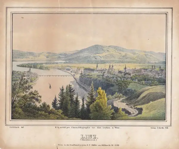 Wien, H. F. Müller 1835. Orig.-Chromolithogr. v. Georg Scheth nach Fischbach, gedr. v. A. Leykam. 12,5 x 18,5 cm. Im w. Rd. gebäunt u. rissig.
