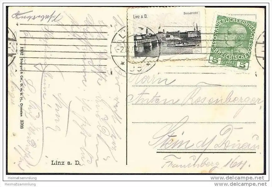 Linz an der Donau - Verlag Stengel Dresden - leichte Stempelspuren (G18373) gel. 1909
