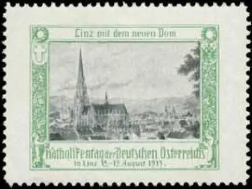 Linz mit dem neuen Dom, Katholikentag der Deutschen Österreichs, Größe/Zustand: 4x5 , guter Zustand, Original alte Reklamemarke die seinerzeit für die Werbung benutzt wurde