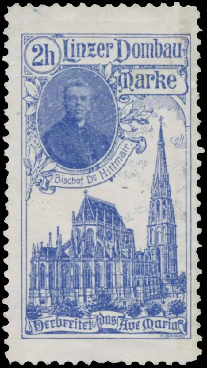 Bischof Dr. Hittmair, verbreitet das Ave Maria, Spendenmarke, blau, weiß, Größe/Zustand: 5x3 , guter Zustand, Original alte Reklamemarke die seinerzeit für die Werbung benutzt wurde